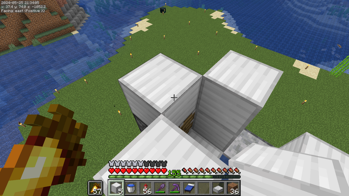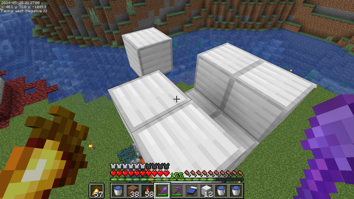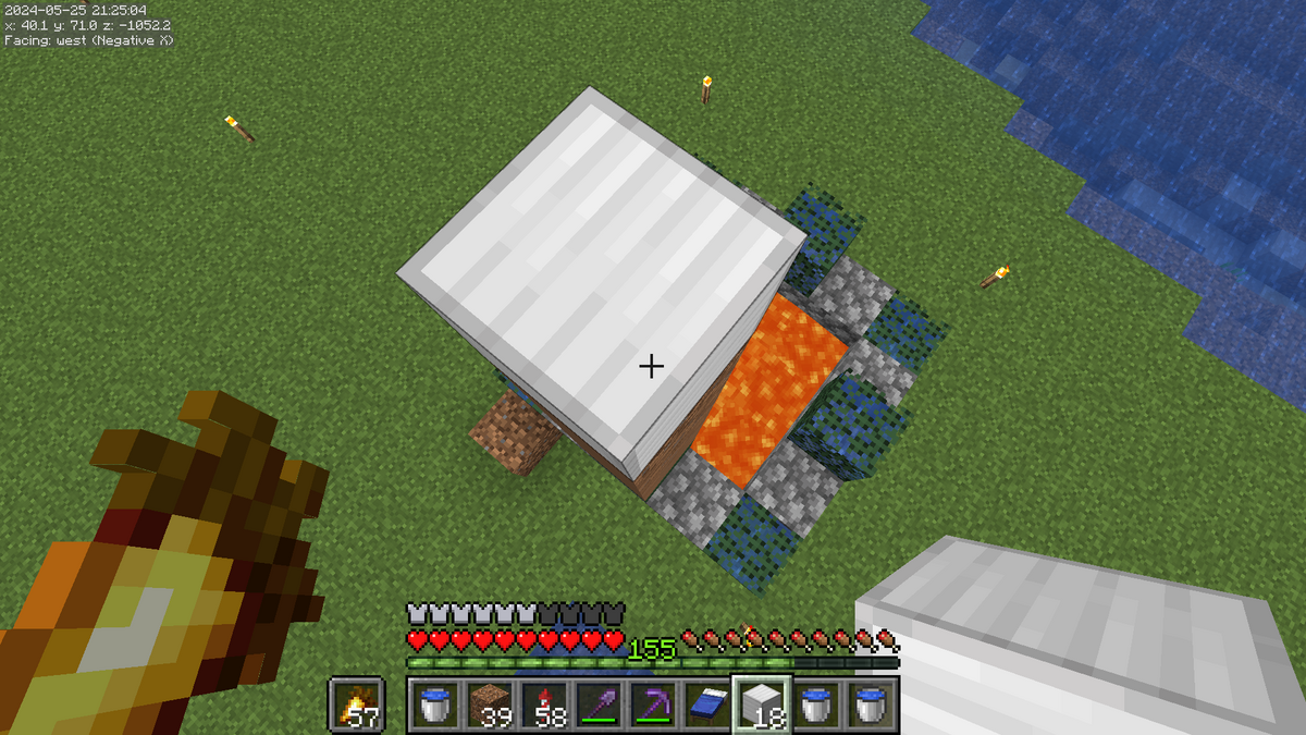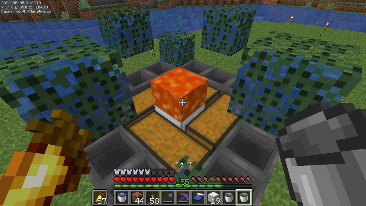 こんな感じになっていればOKです。建築ブロックに水を設置しないようにご注意ください。
