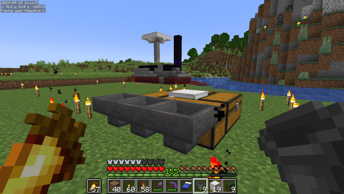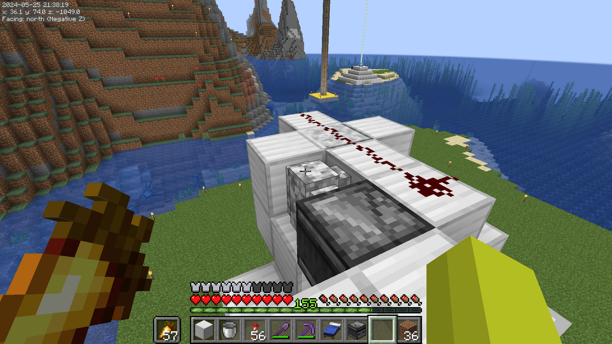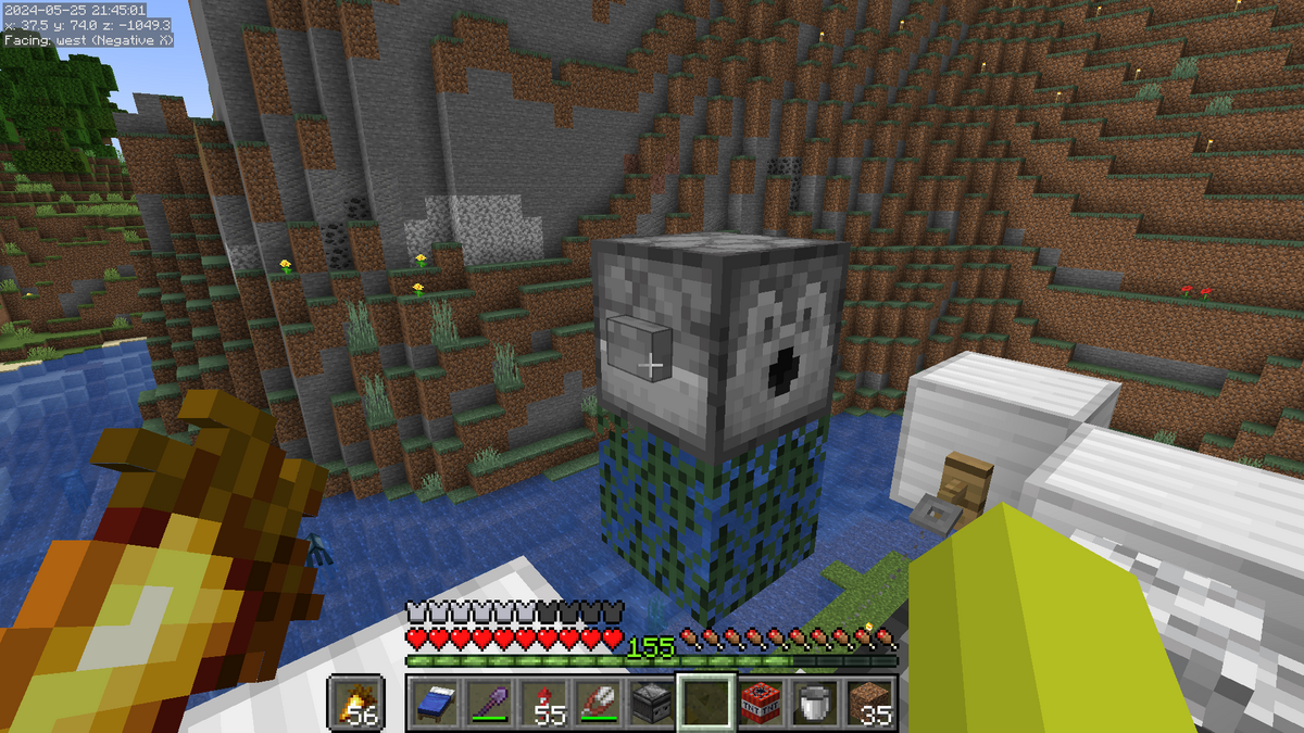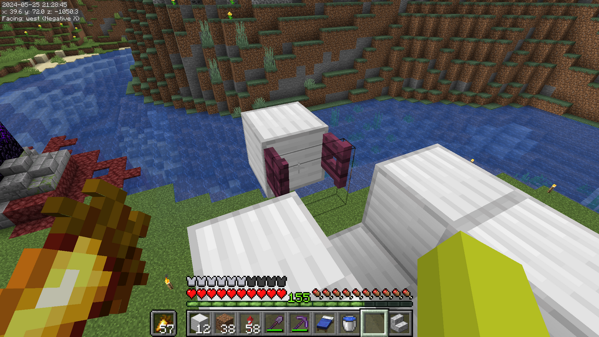 こんな感じになっていればOKです。建築ブロックに水を設置しないようにご注意ください。