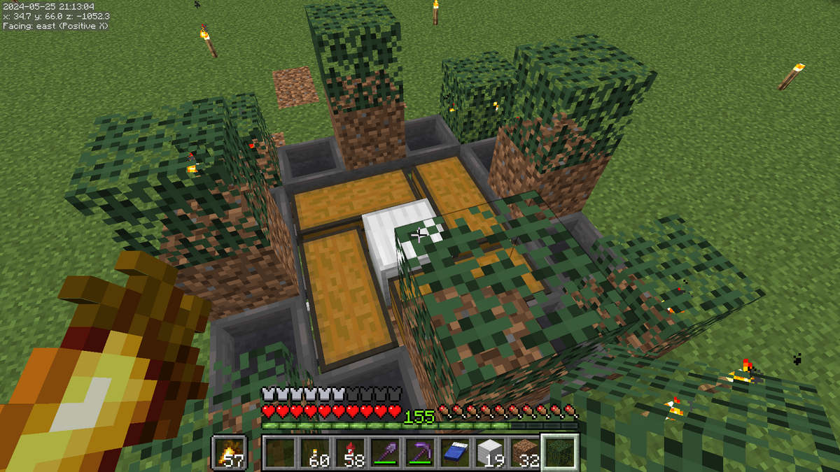 まず、葉ブロックの上に仮ブロックを4個設置して、