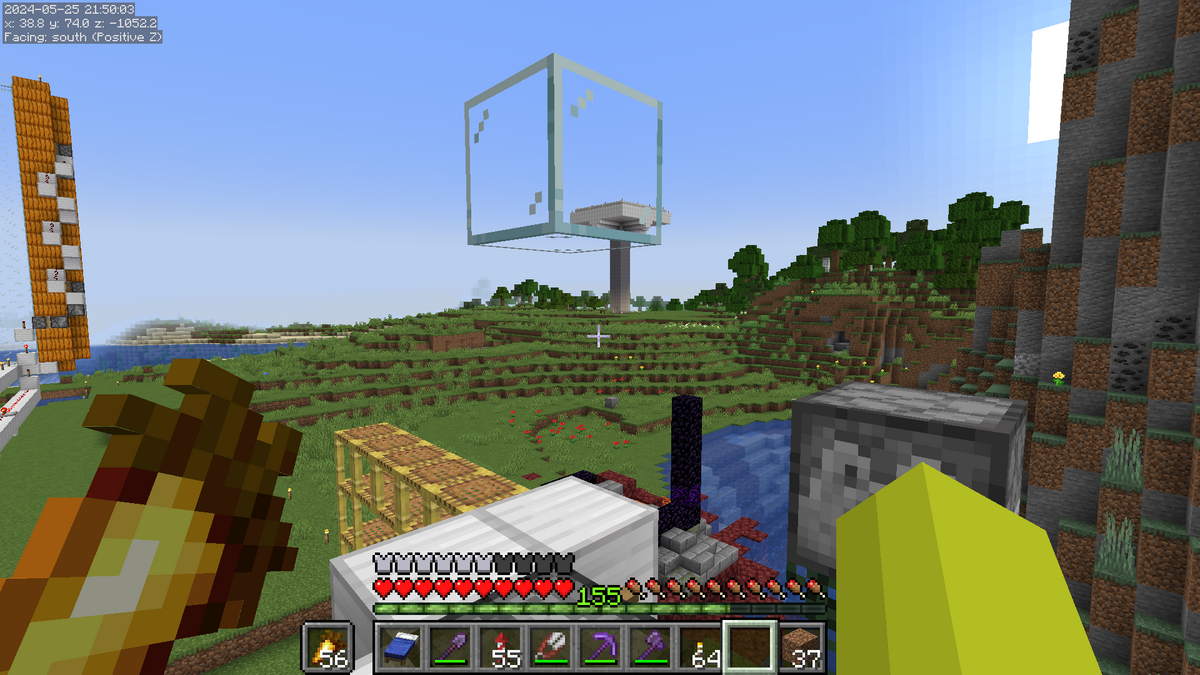 ここは必須ではなく任意ですが、待機場所を作っておくと楽です。建築ブロックの上に仮ブロックを2個設置して、