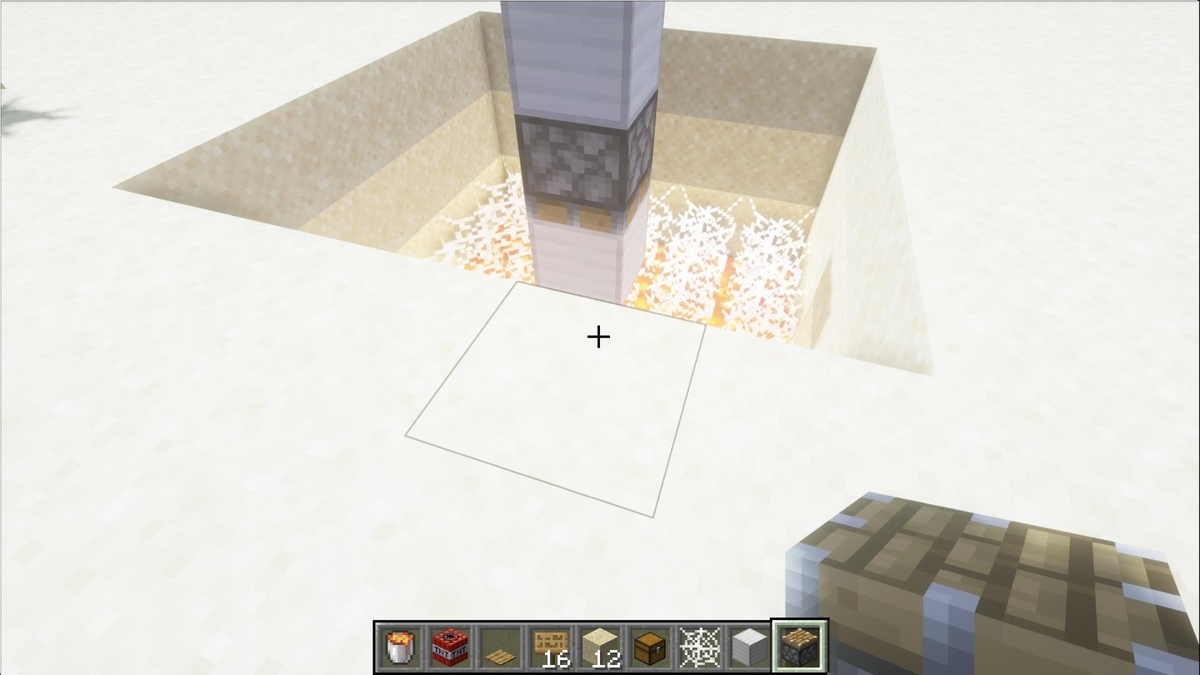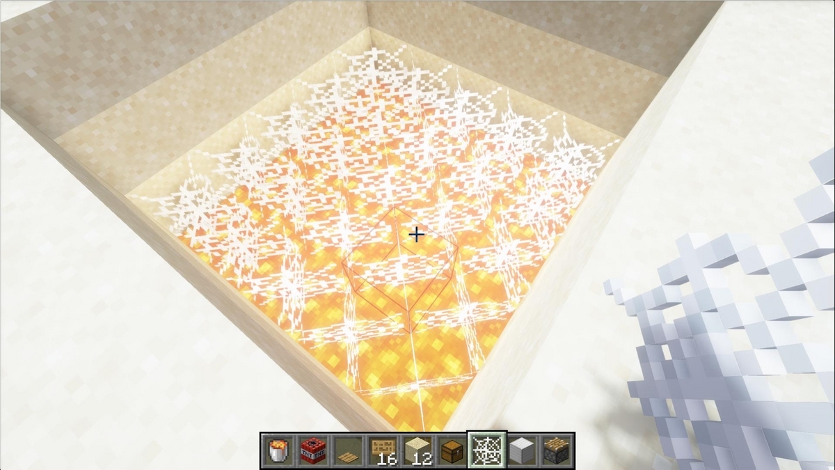 真ん中の蜘蛛の巣の上に建築ブロックを3個設置して、