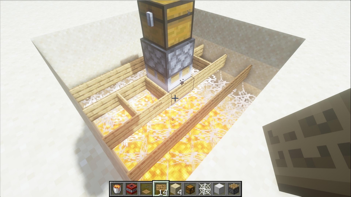 一番上の建築ブロックの代わりにトラップチェストを設置して、